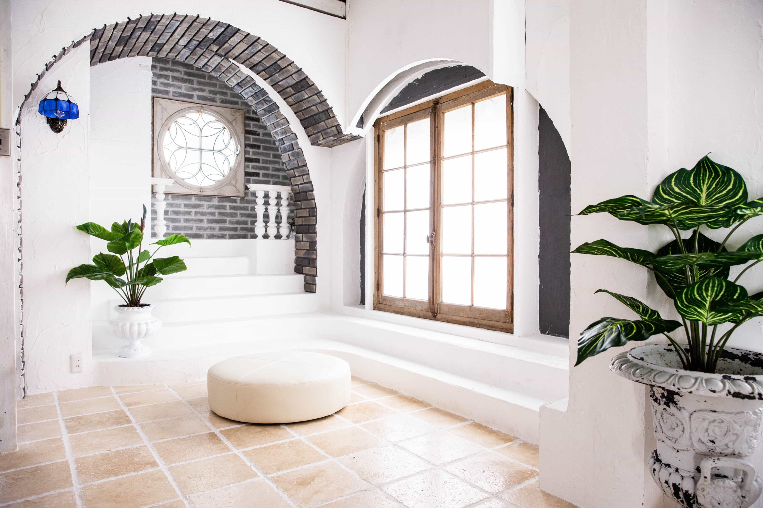 約24坪(約80平米)、天井高3.3m(一番高いところ)の広々した空間に、フランスアンティークの建具をふんだんに使った白を基調とした内装が特徴です。随所に施したアーチのディテールが本物のシャトーの雰囲気を醸し出します!